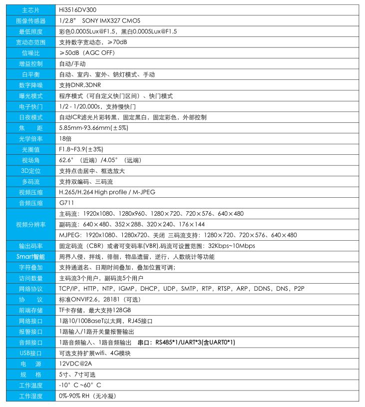 專業級大靶面超星光級圖像傳感器,實現日夜圖像全彩,200 萬高清 18 倍步進電機變焦鏡頭